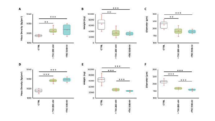W8非標(biāo)記細(xì)胞三維分析與分選系統(tǒng)帶來(lái)了藥物發(fā)現(xiàn)的創(chuàng)新性技術(shù),因?yàn)樗峁┝藷o(wú)標(biāo)記、無(wú)創(chuàng)的分析,有助于克服3D細(xì)胞培養(yǎng)成像的技術(shù)限制。三維腫瘤球體物理性質(zhì)的精確測(cè)量是朝著準(zhǔn)確測(cè)試新療法潛力邁出的關(guān)鍵一步。雖然細(xì)胞存活率下降與失重和直徑收縮密切相關(guān),但3D球體的緊湊性對(duì)于藥物作用機(jī)制而言更重要,而質(zhì)量密度是我們量化球體緊湊性的物理學(xué)參數(shù)。