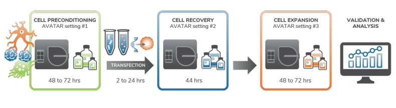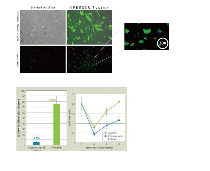 無論使用電穿孔法、化學轉染或脂質體轉染,AVATAR 均可用于同時提高轉染效率與細胞活率,尤其針對一向難以克服的原代細胞。透過高壓的條件,AVATAR 可以擠壓細胞,改善轉染效率,搭配下游有利于細胞恢復與生的條件,最終將可獲得顯著擴增提高的轉染細胞。