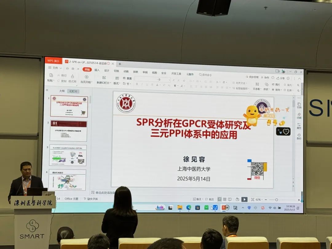 在會上,上海中醫藥大學徐見容博士進行了精彩的主題報告演講。徐博士首先介紹了SPR(表面等離子共振)技術在分子互作研究中的重要地位和廣泛應用。